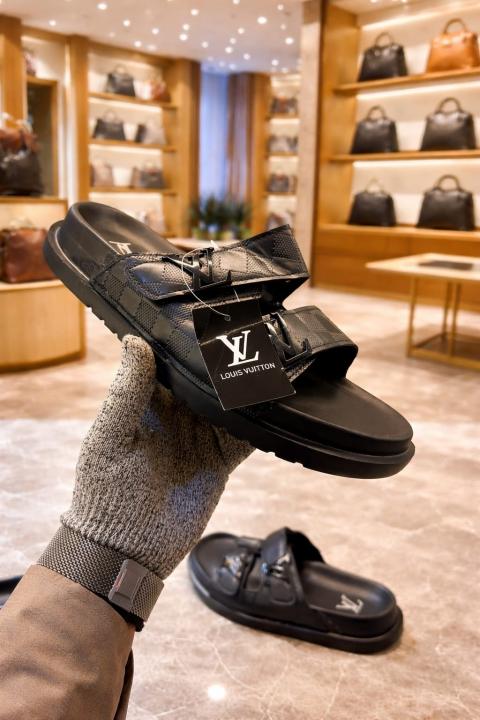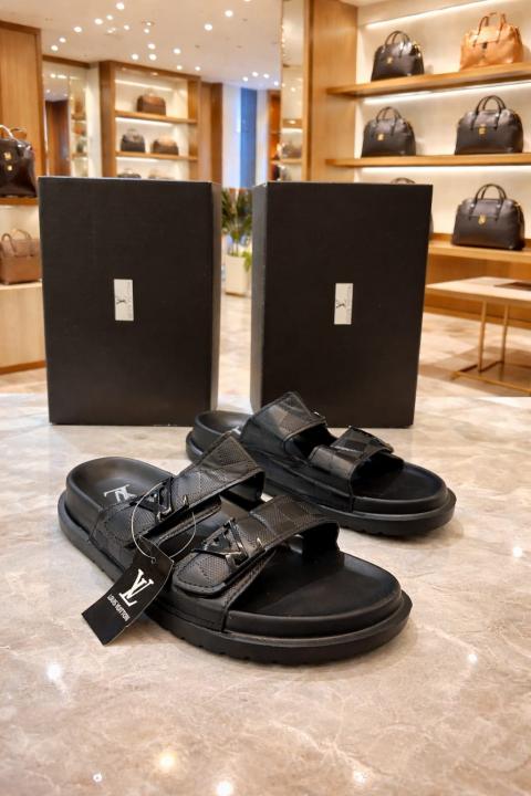 Lou-is-vuitton-black-premium-quality-stylish-men-flipflops black